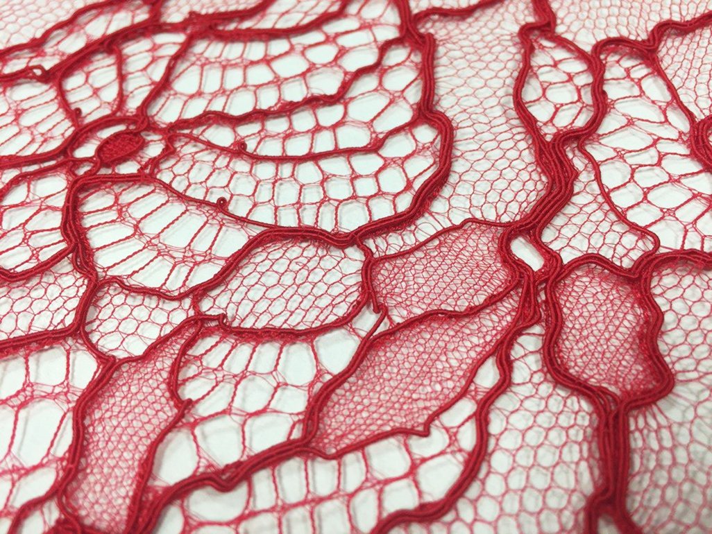 Красная кружевная ткань