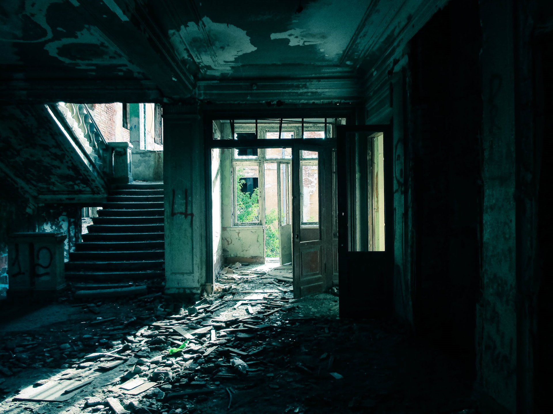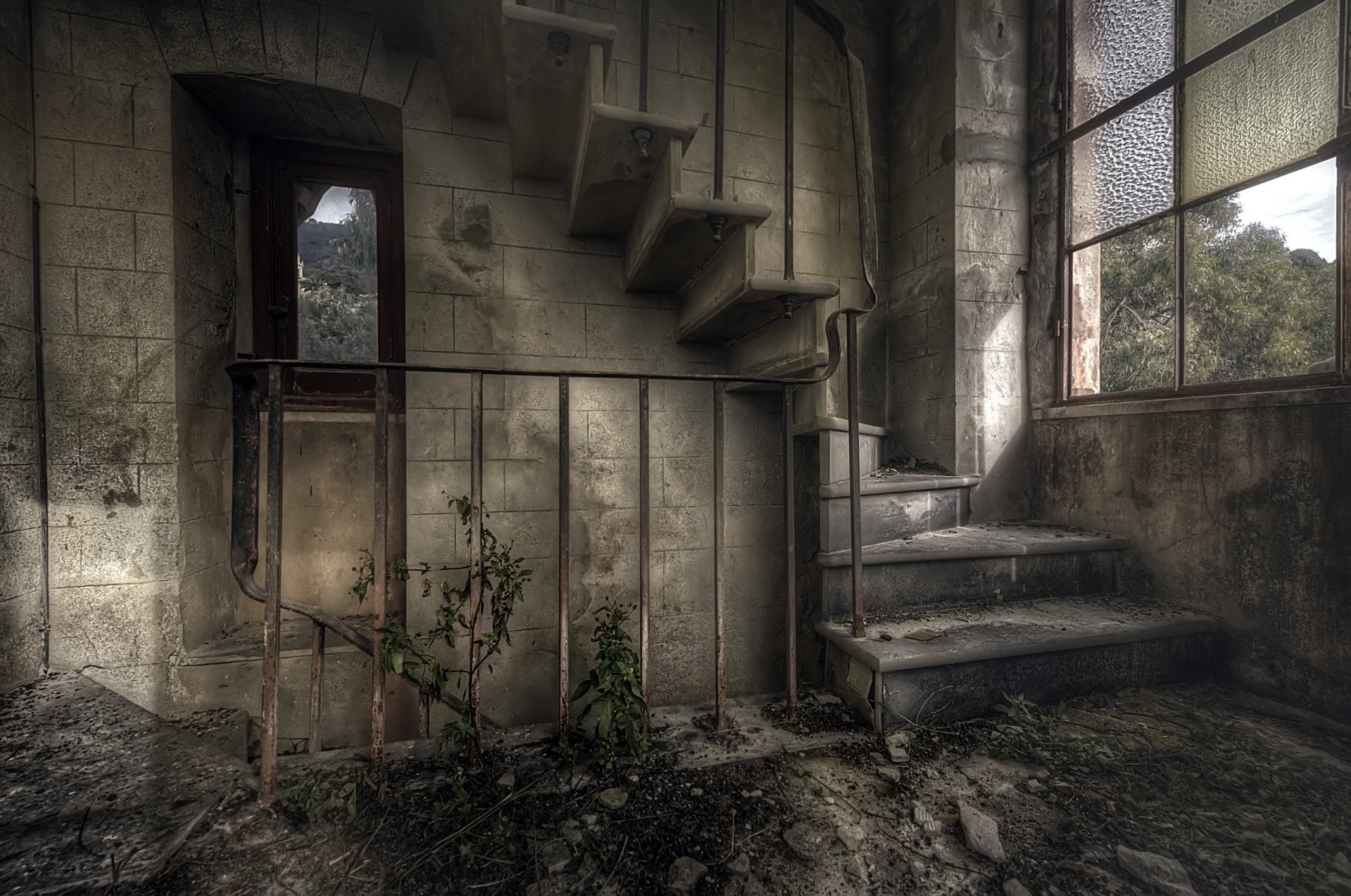 Лестница в заброшенном доме
