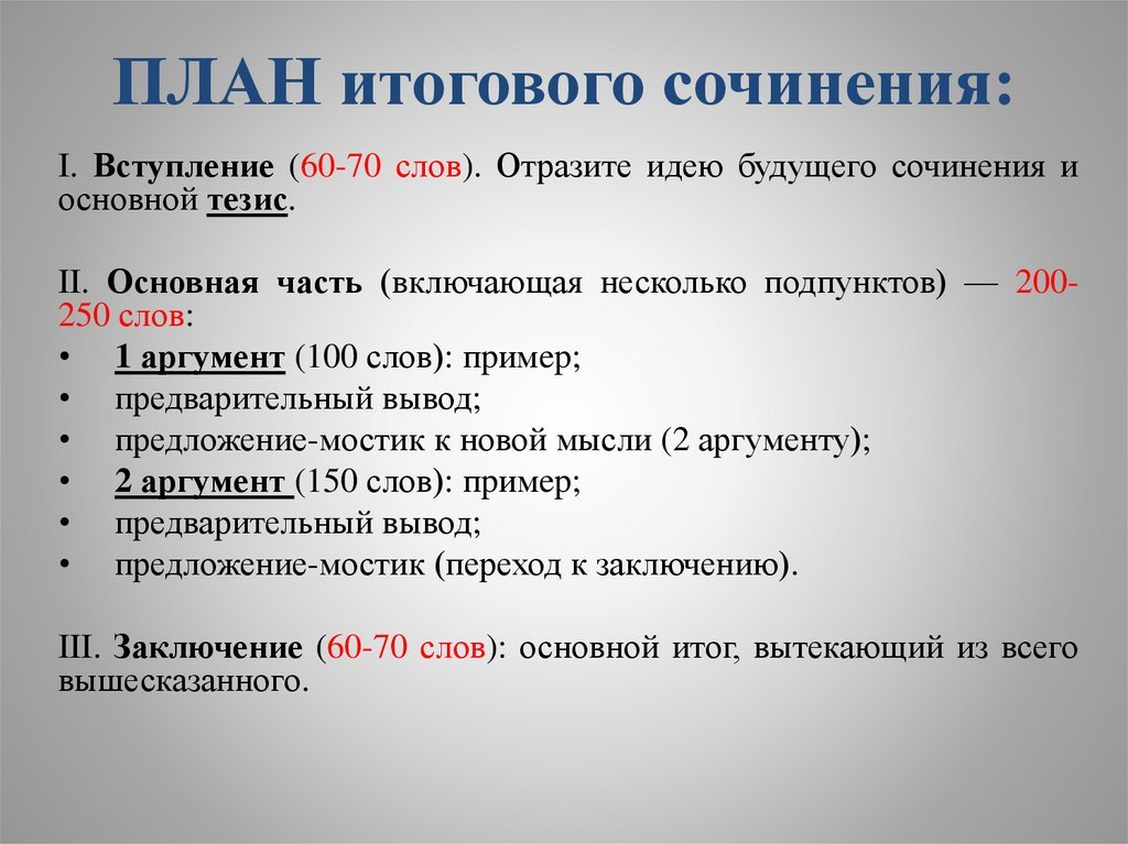 План написания итогового сочинения 11 класс