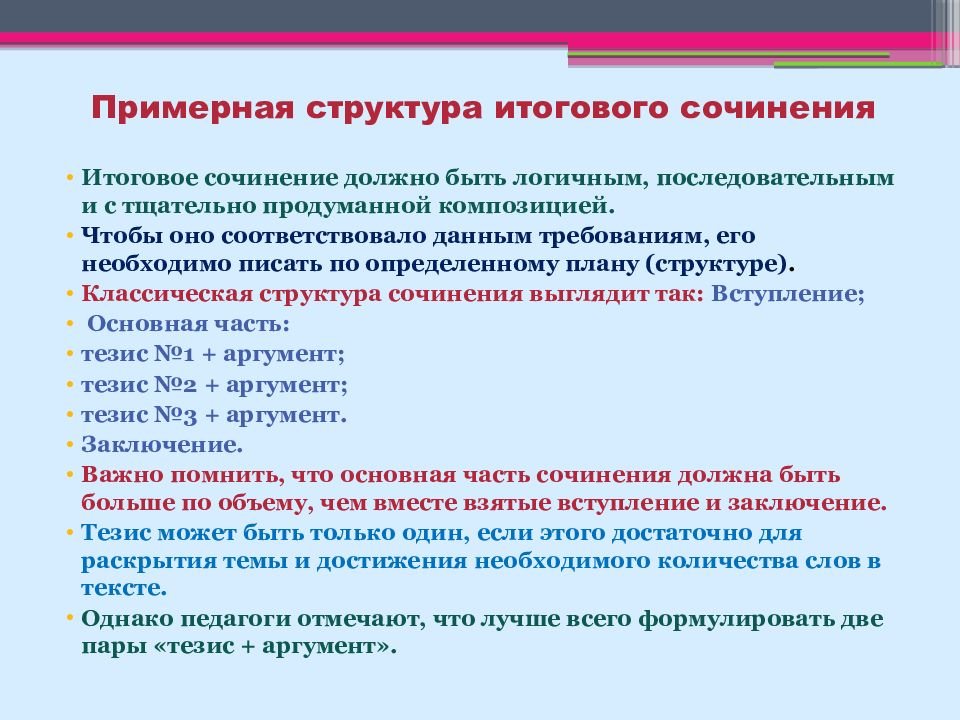 Строение итогового сочинения в 11 классе