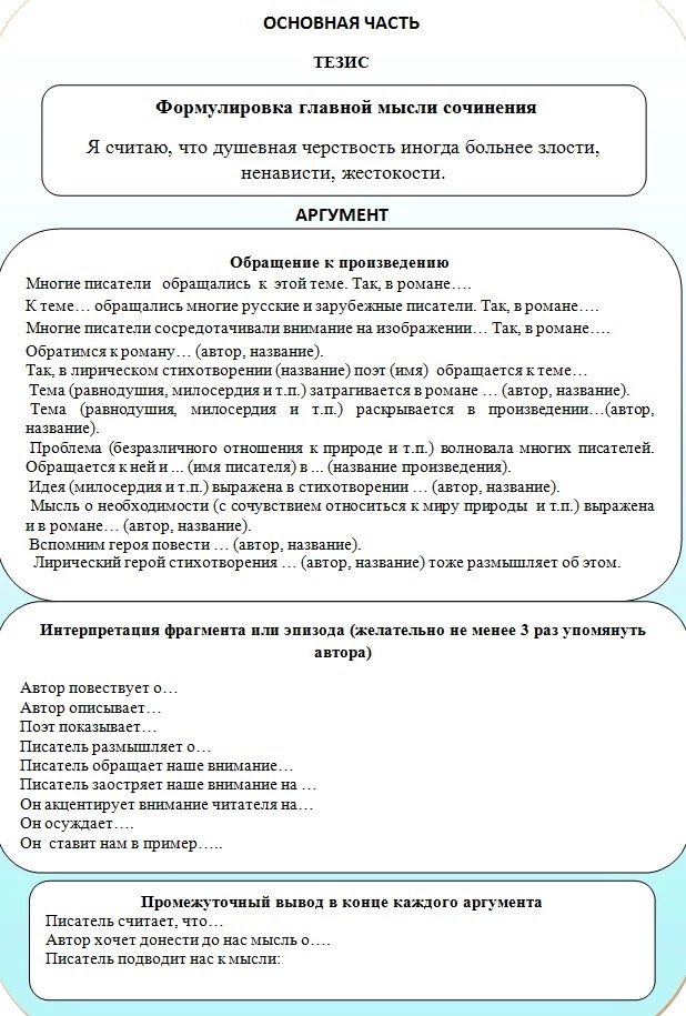 Схема написания итогового сочинения ЕГЭ