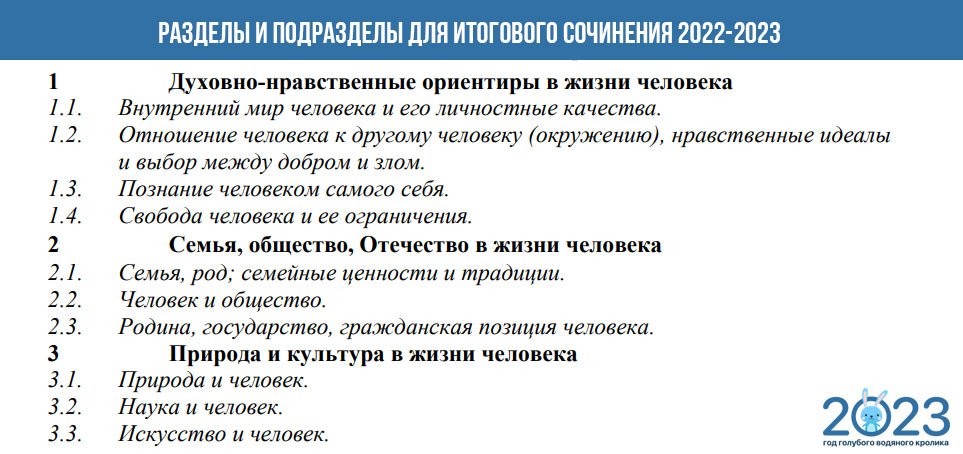 Темы итогового сочинения 2023