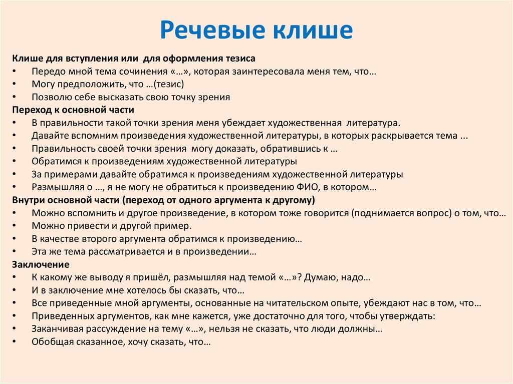Схема итогового сочинения с клише