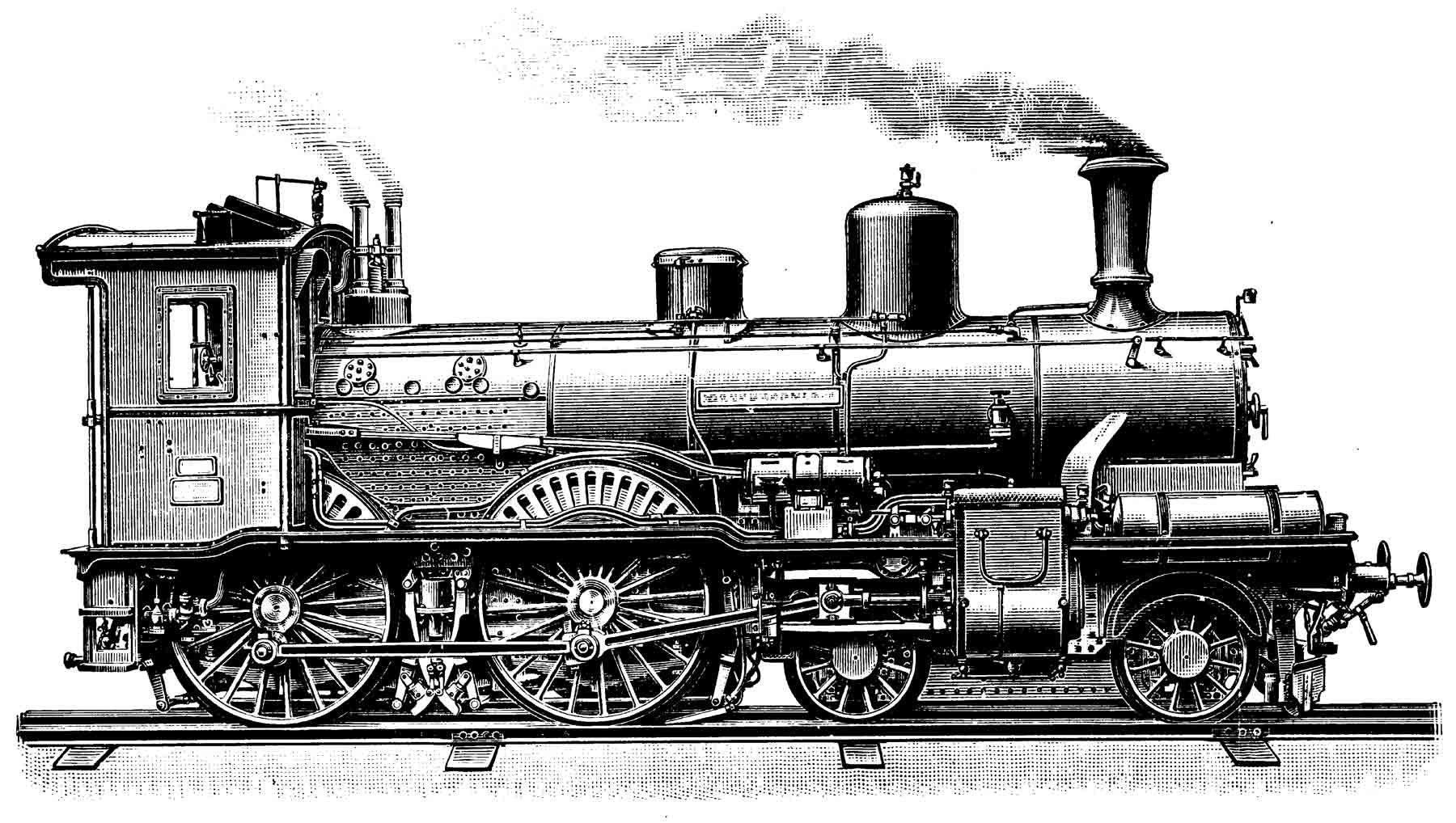 Паровоз 19 века сбоку