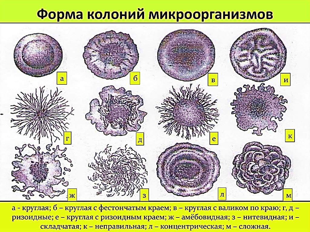 Фестончатые края колоний бактерий
