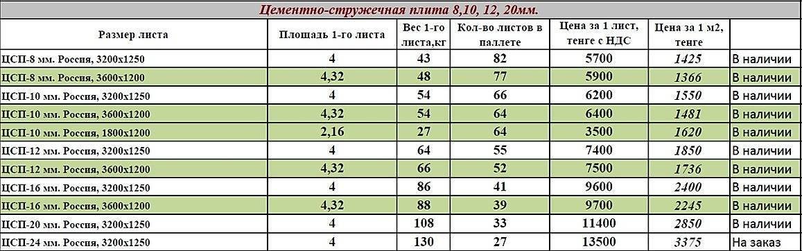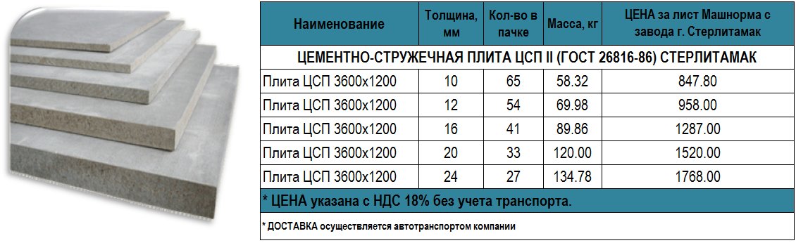 Вес плиты ЦСП 20 мм