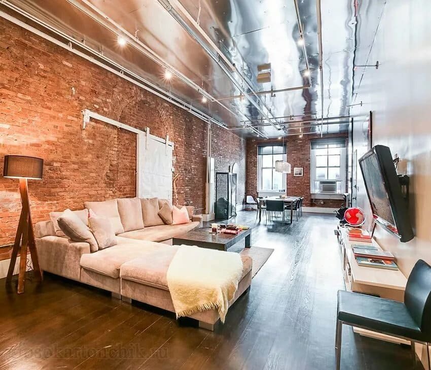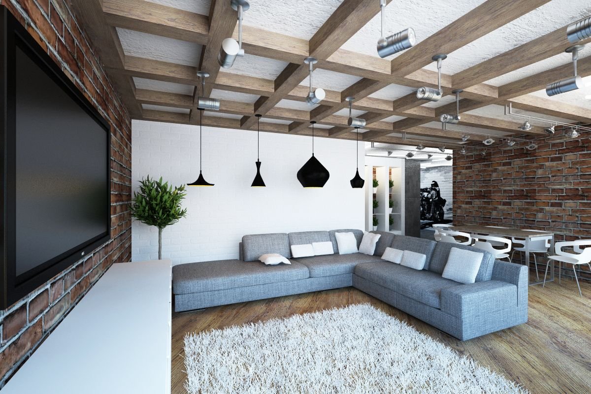 Крашеный потолок в стиле лофт