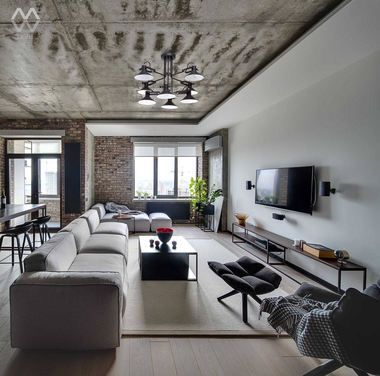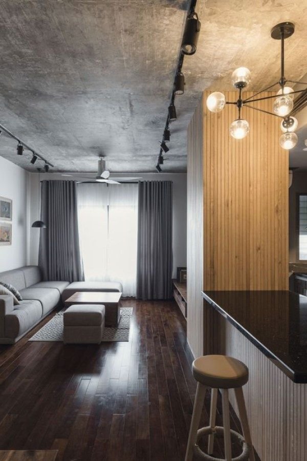 Бетонный потолок в стиле лофт