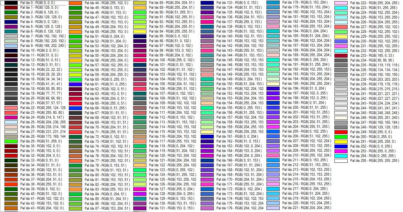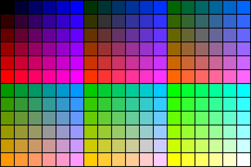 Таблица цветов RGB 255