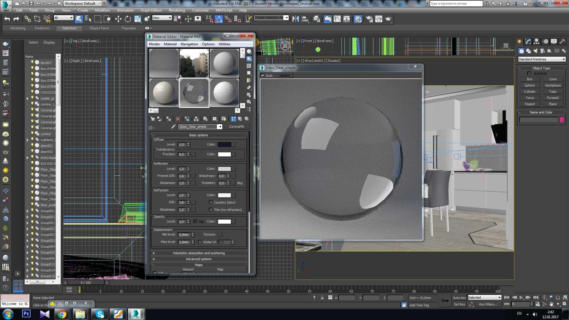 Стекло в 3d Max Corona