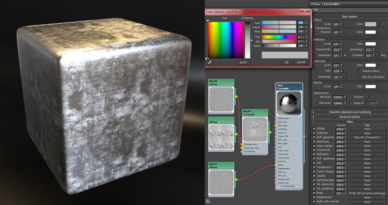 Материал серебро в 3d Max Corona