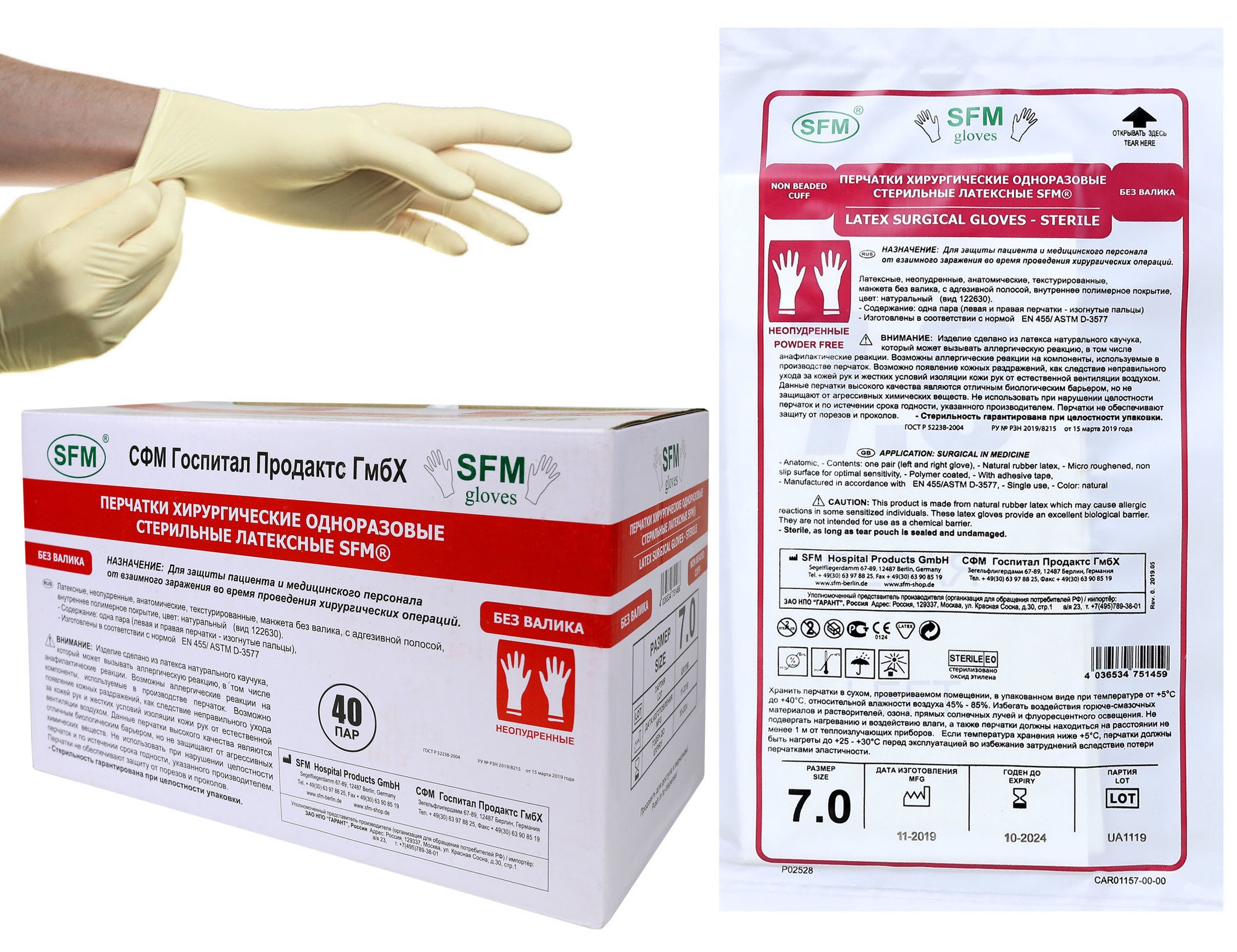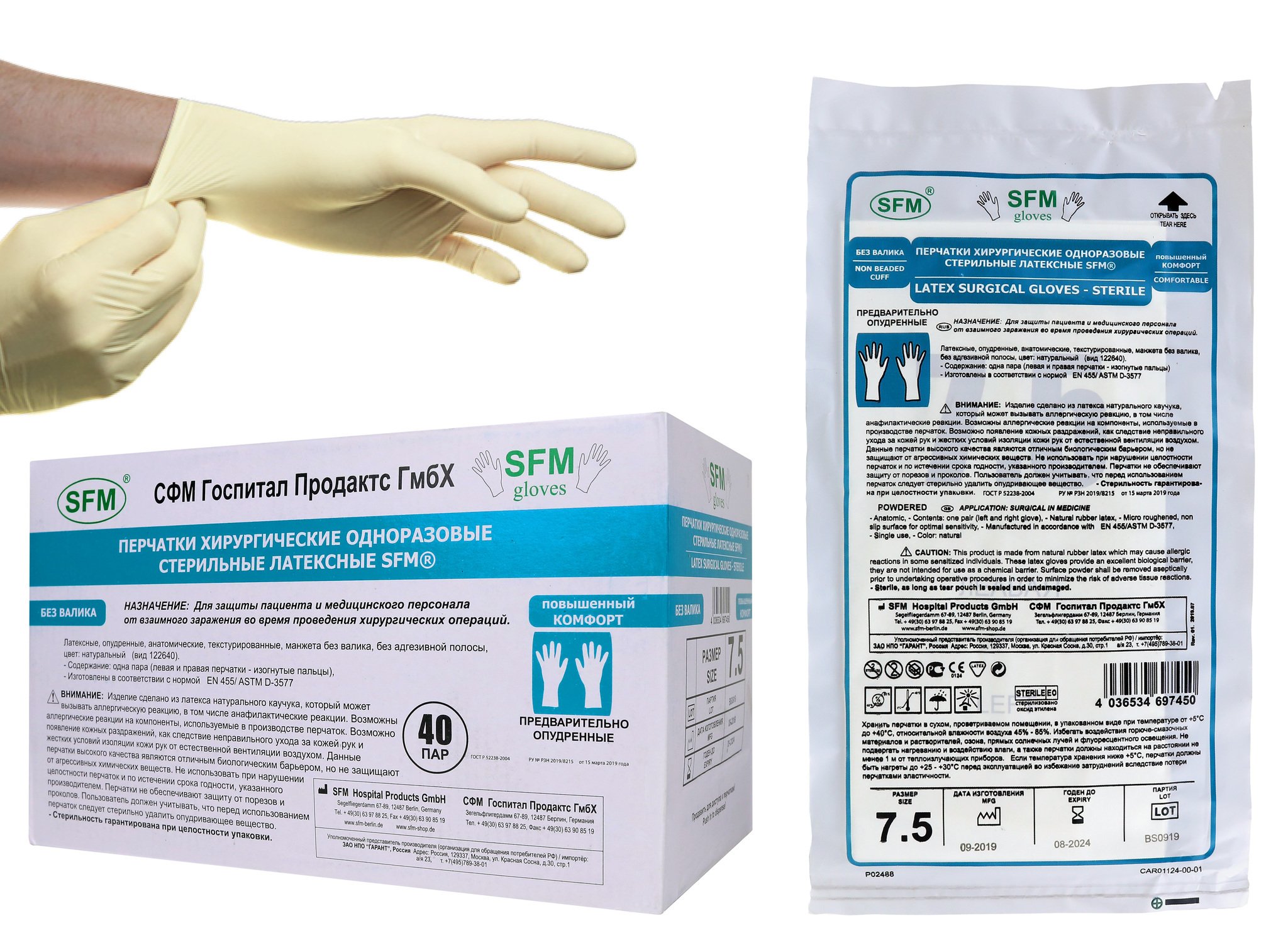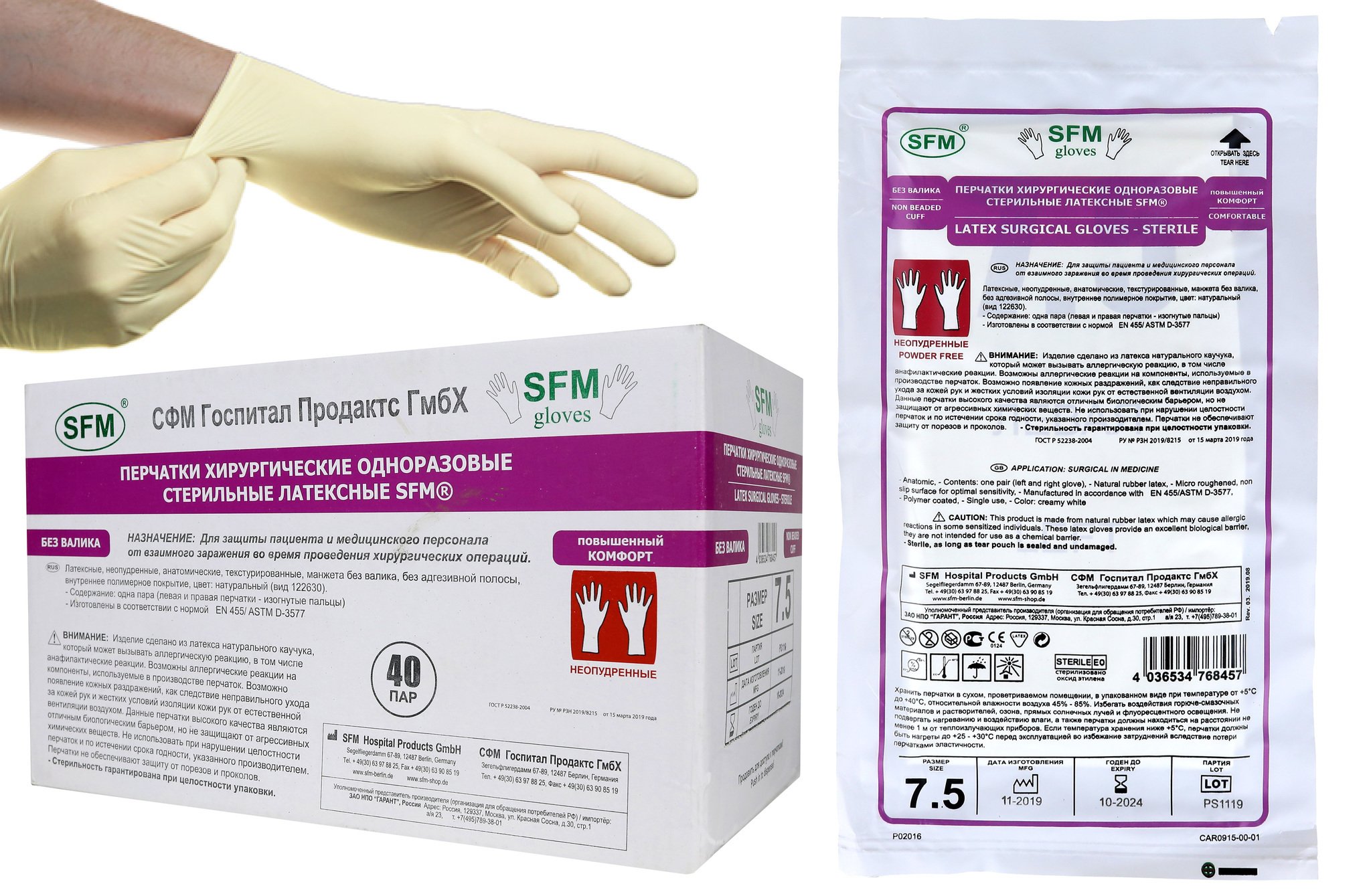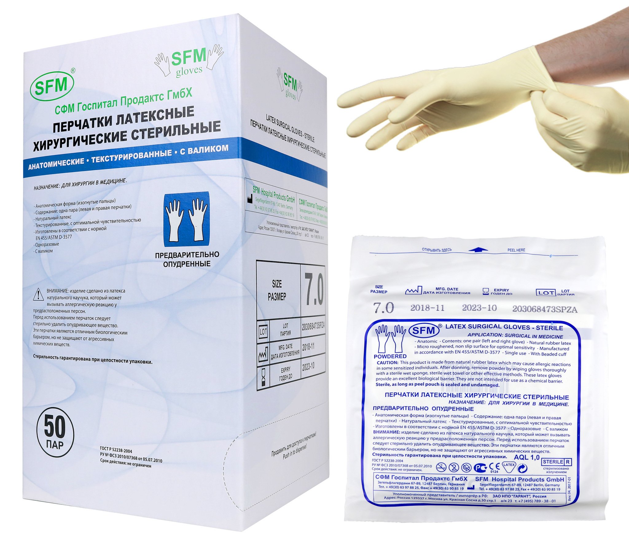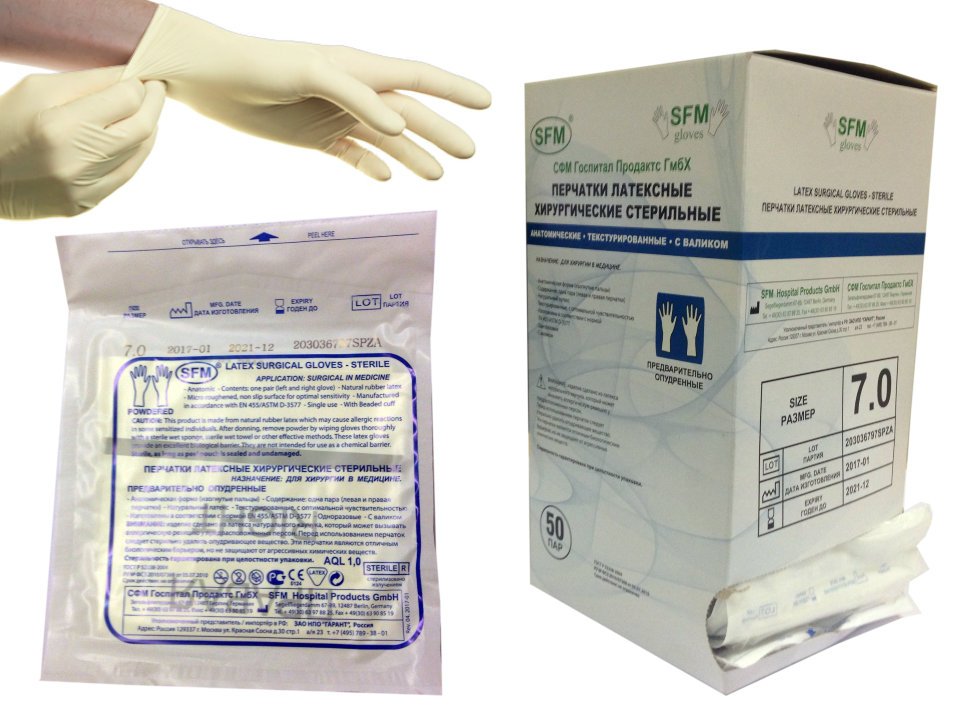 Перчатки хирургические стерильные СФМ