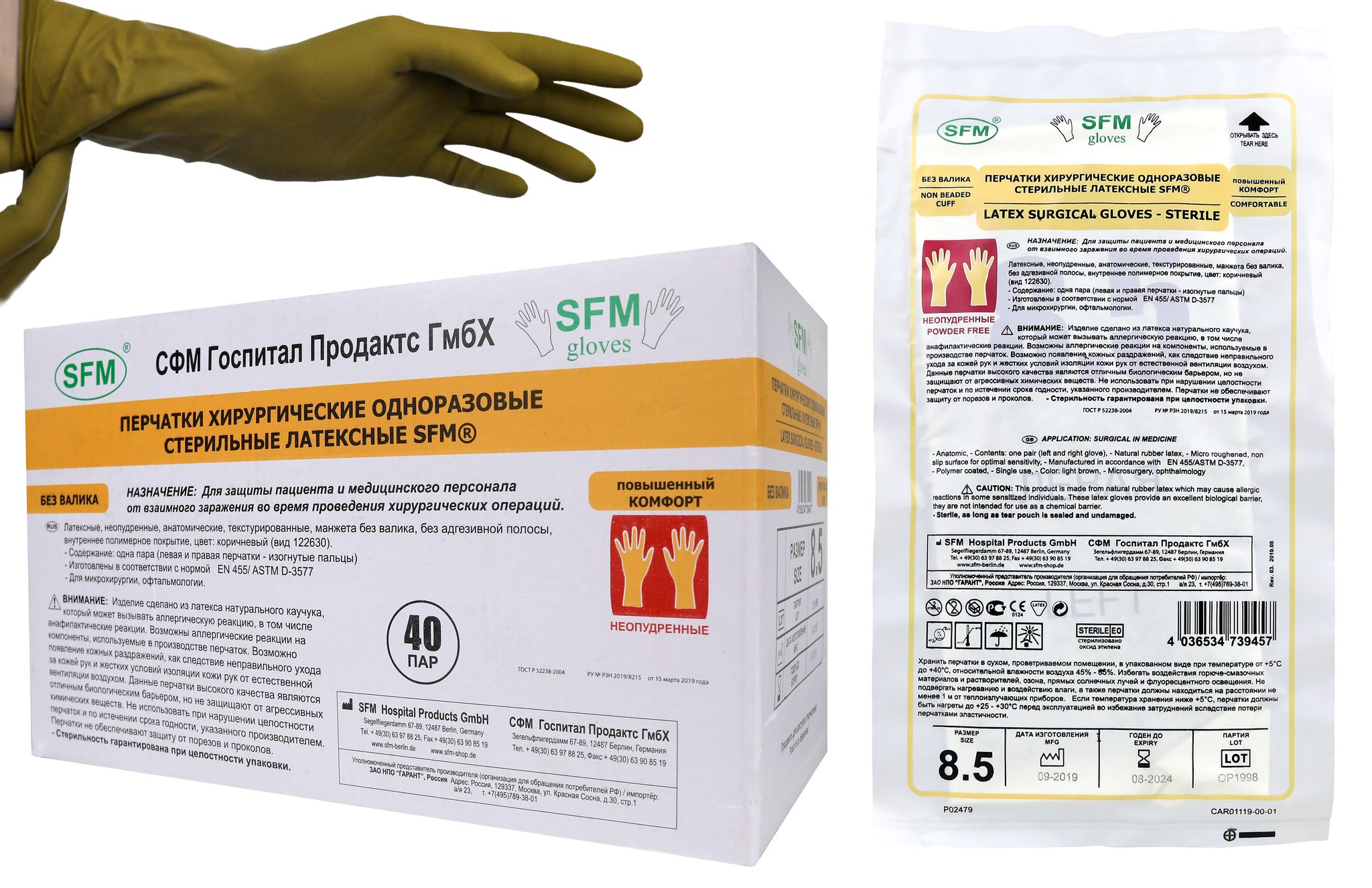 Перчатки хирургические одноразовые стерильные латексные SFM