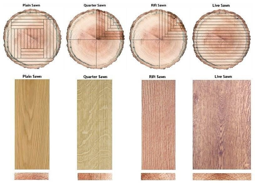 Радиальный и тангенциальный распил древесины