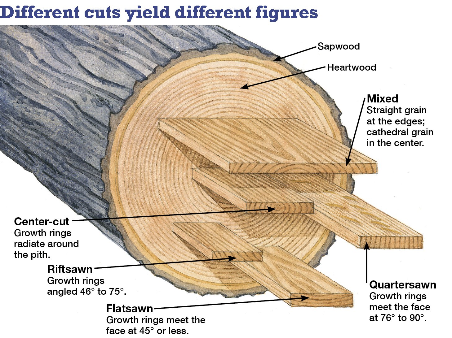 Распил дерева тангенциальный и радиальный