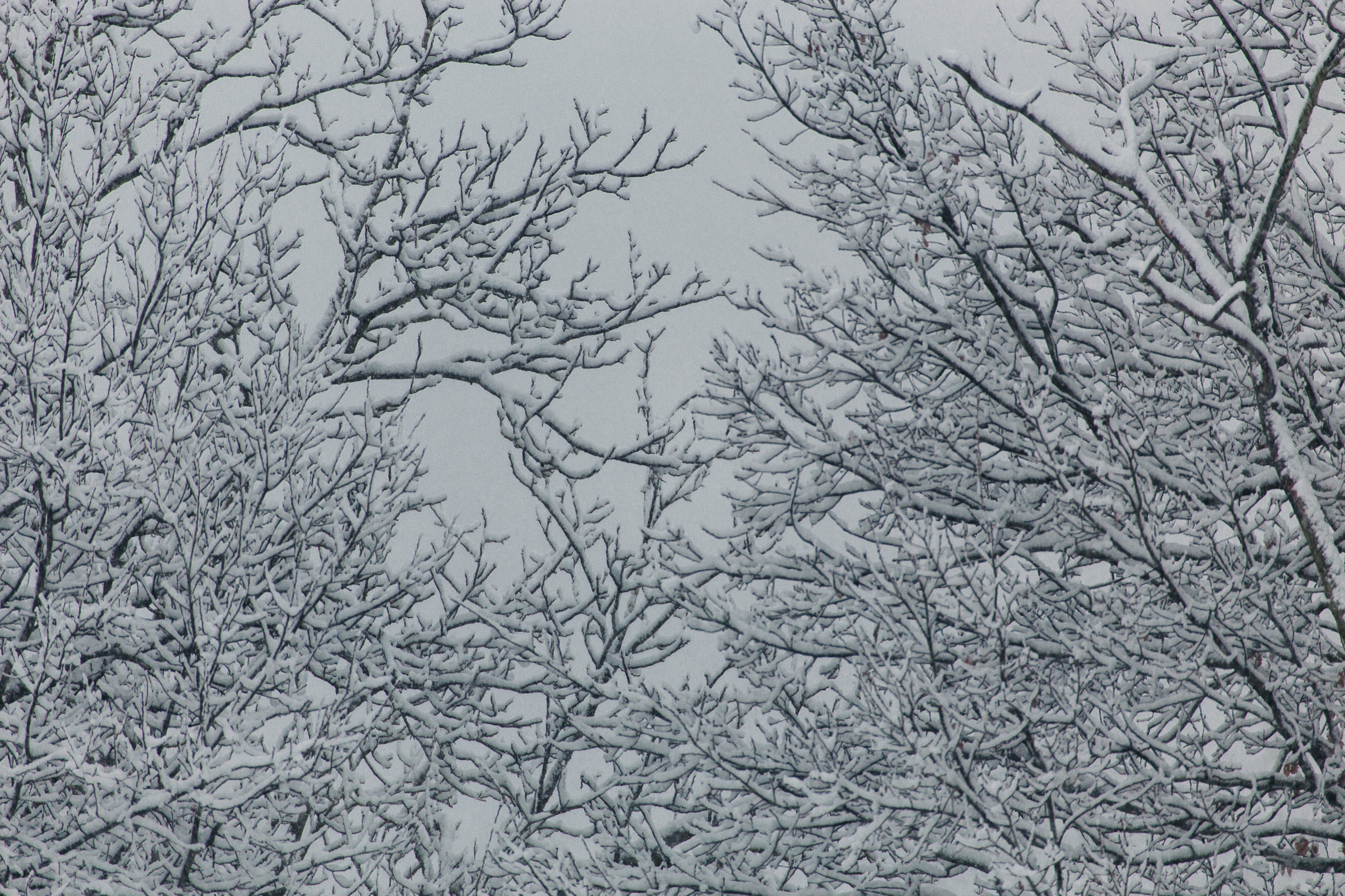 Деревья в снегу на белом фоне