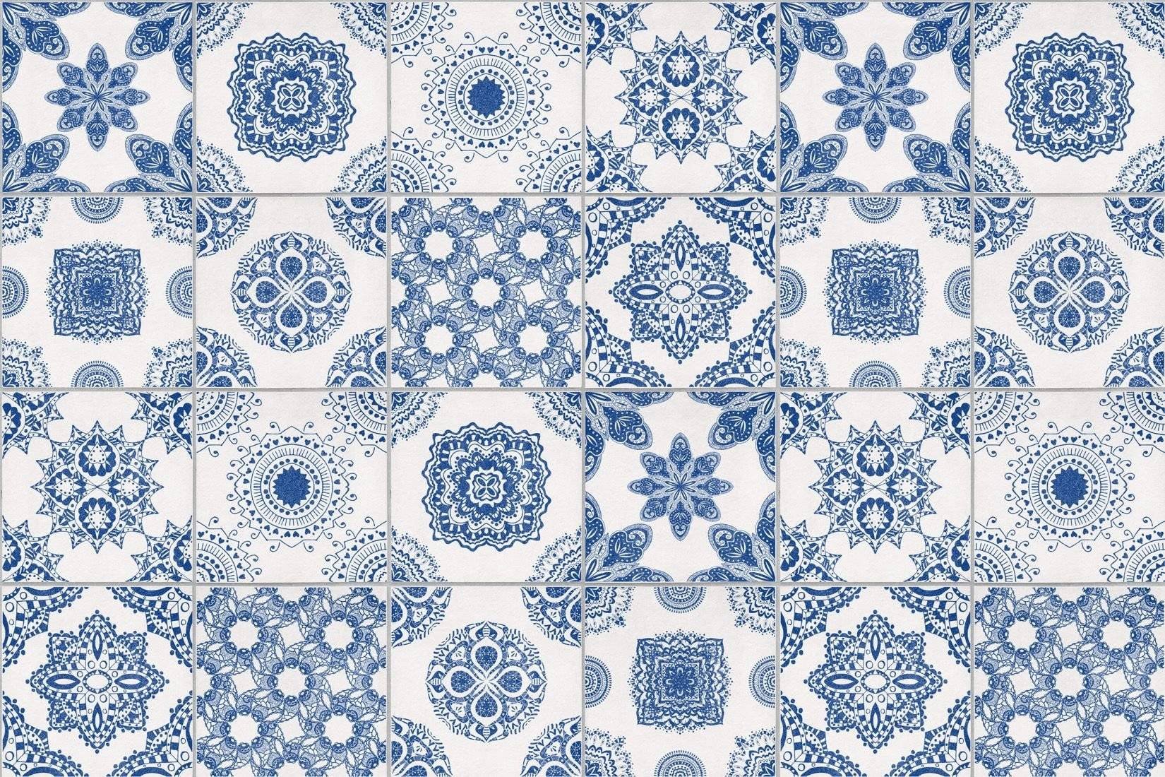 Плитка белая с голубым узором