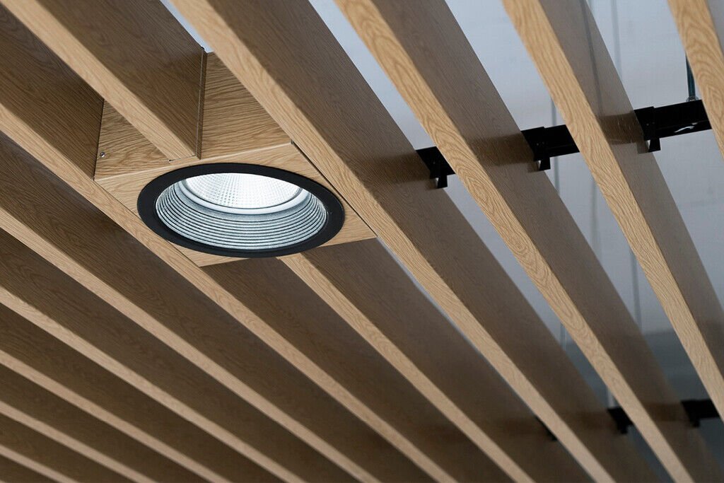 Кубообразный реечный потолок 100x30x100 дуб Селект