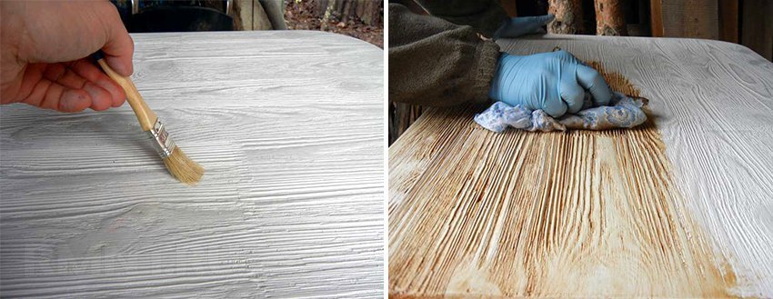 Состаривание дерева морилкой
