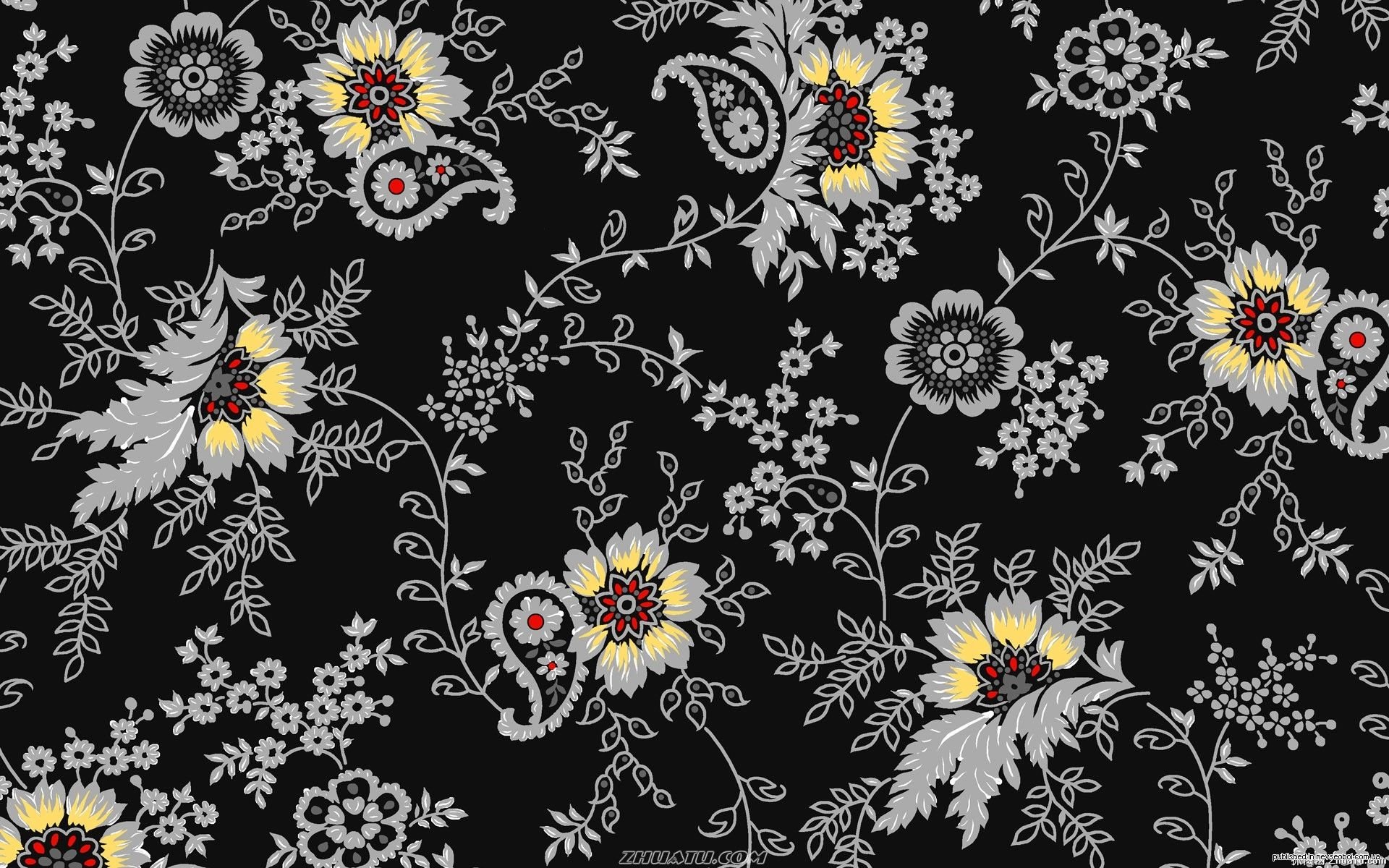 Цветочный узор на черном фоне