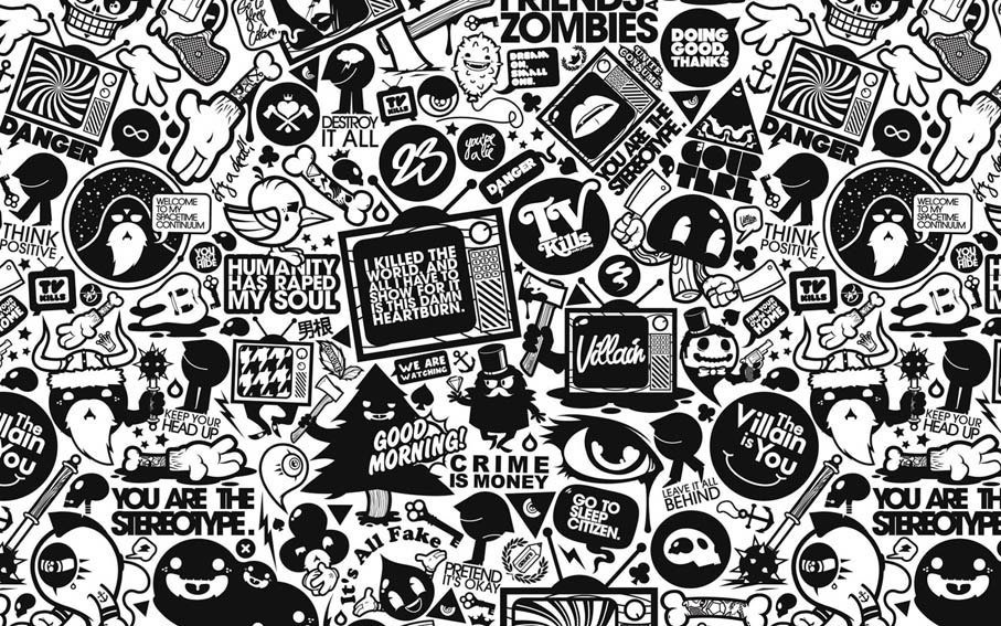 Стикербомбинг черно белый