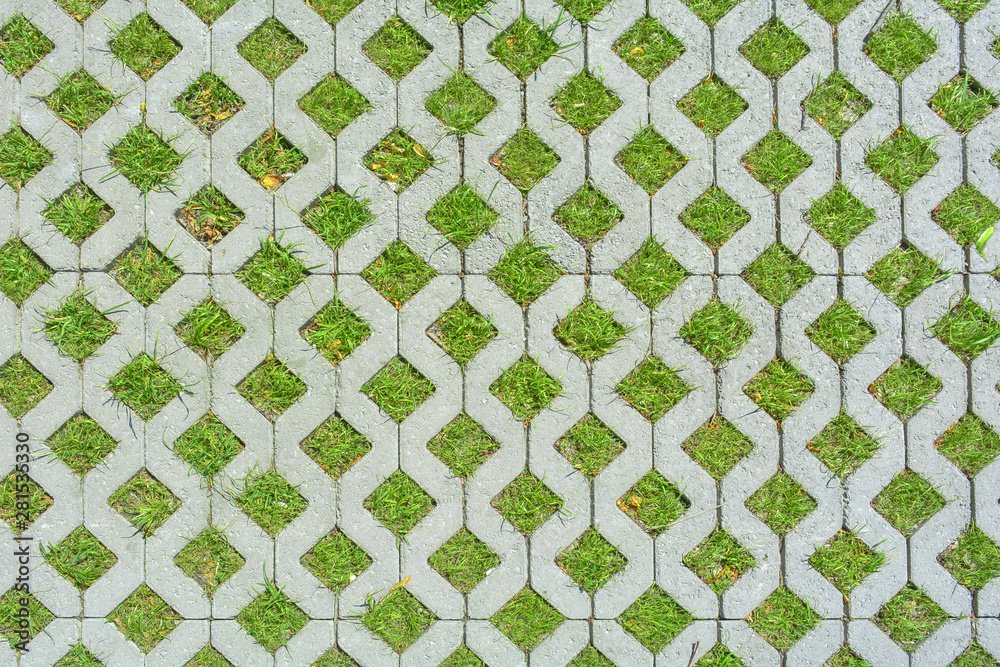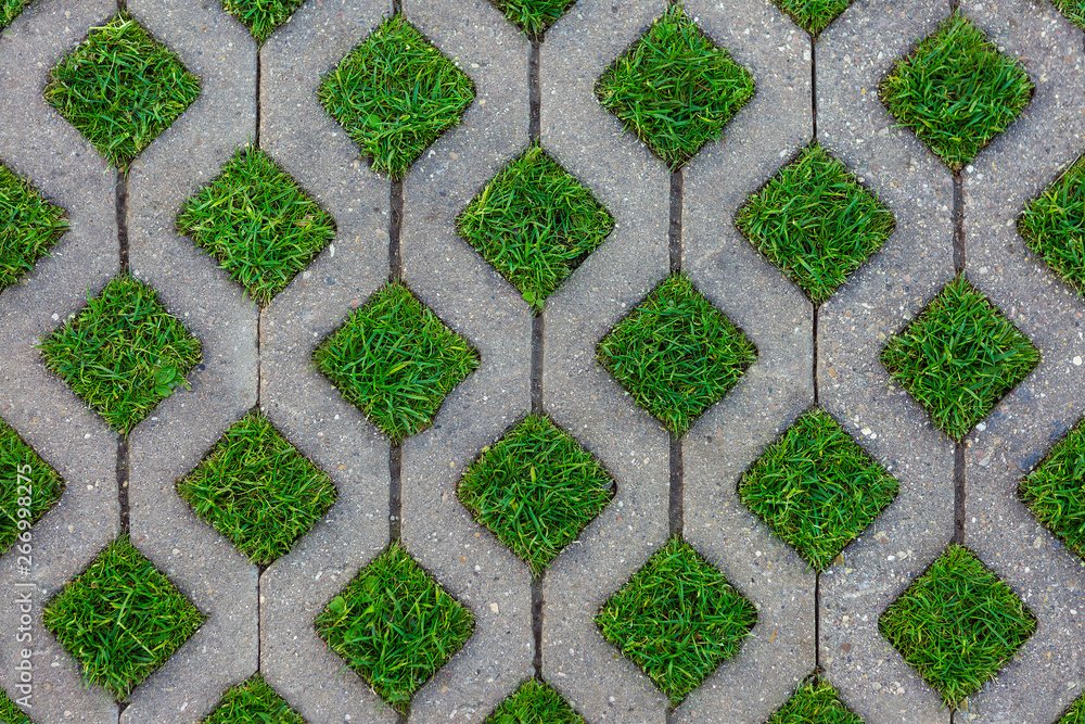 Текстура тротуарной плитки с травой