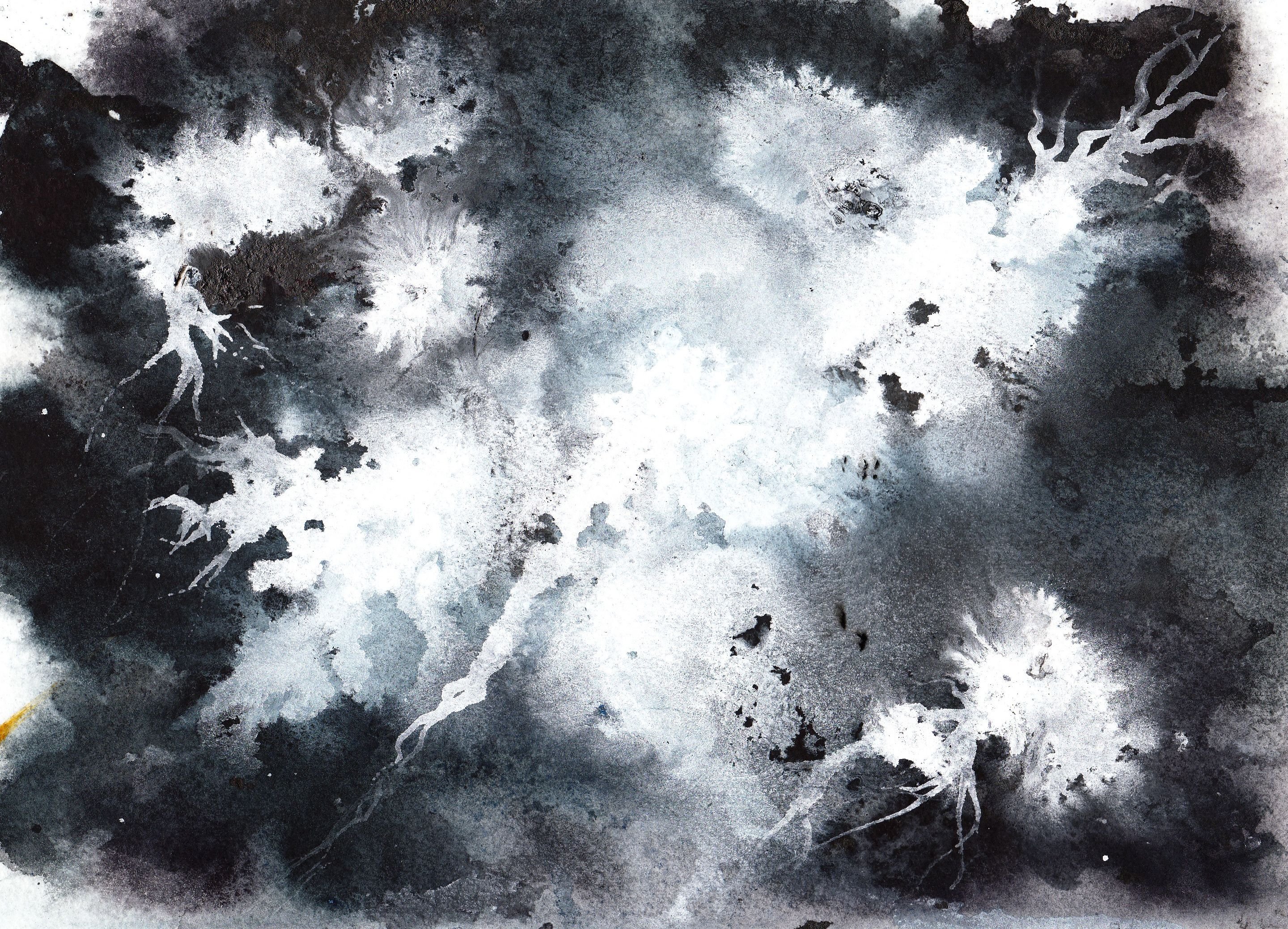 Черные разводы акварель