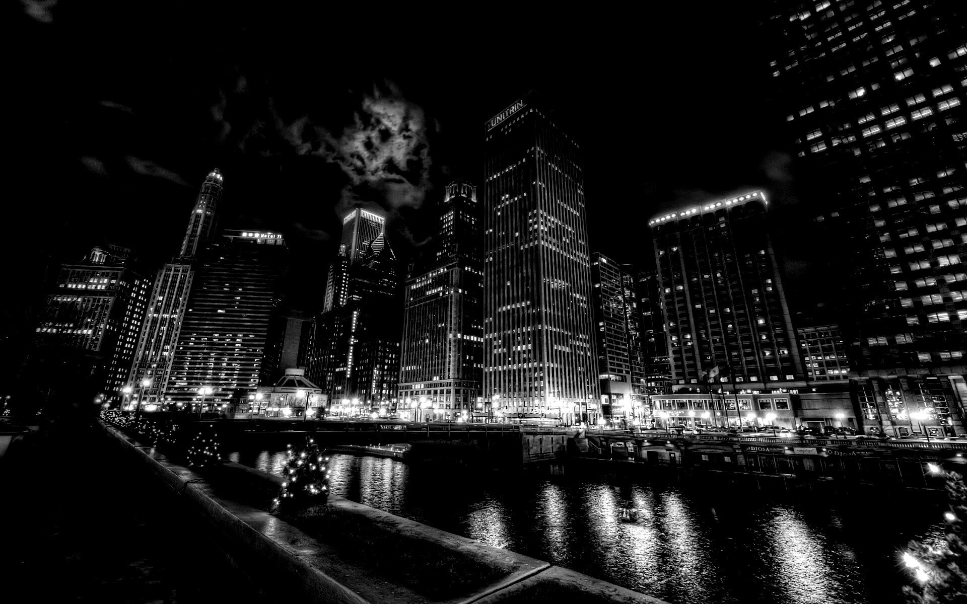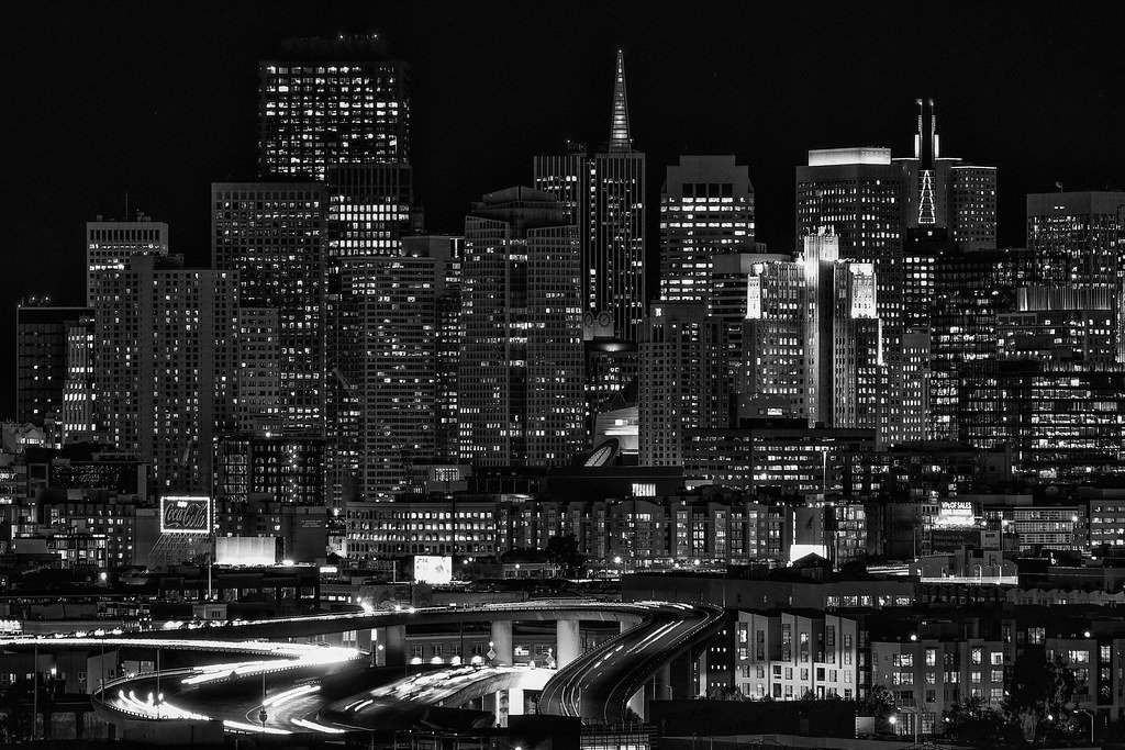 Ночной город черно белый