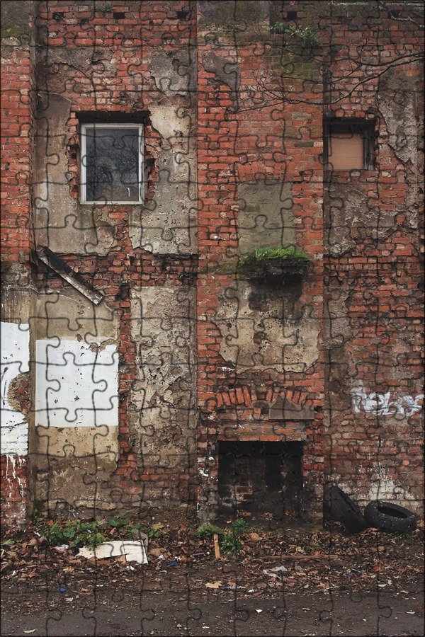 Разрушенная кирпичная стена