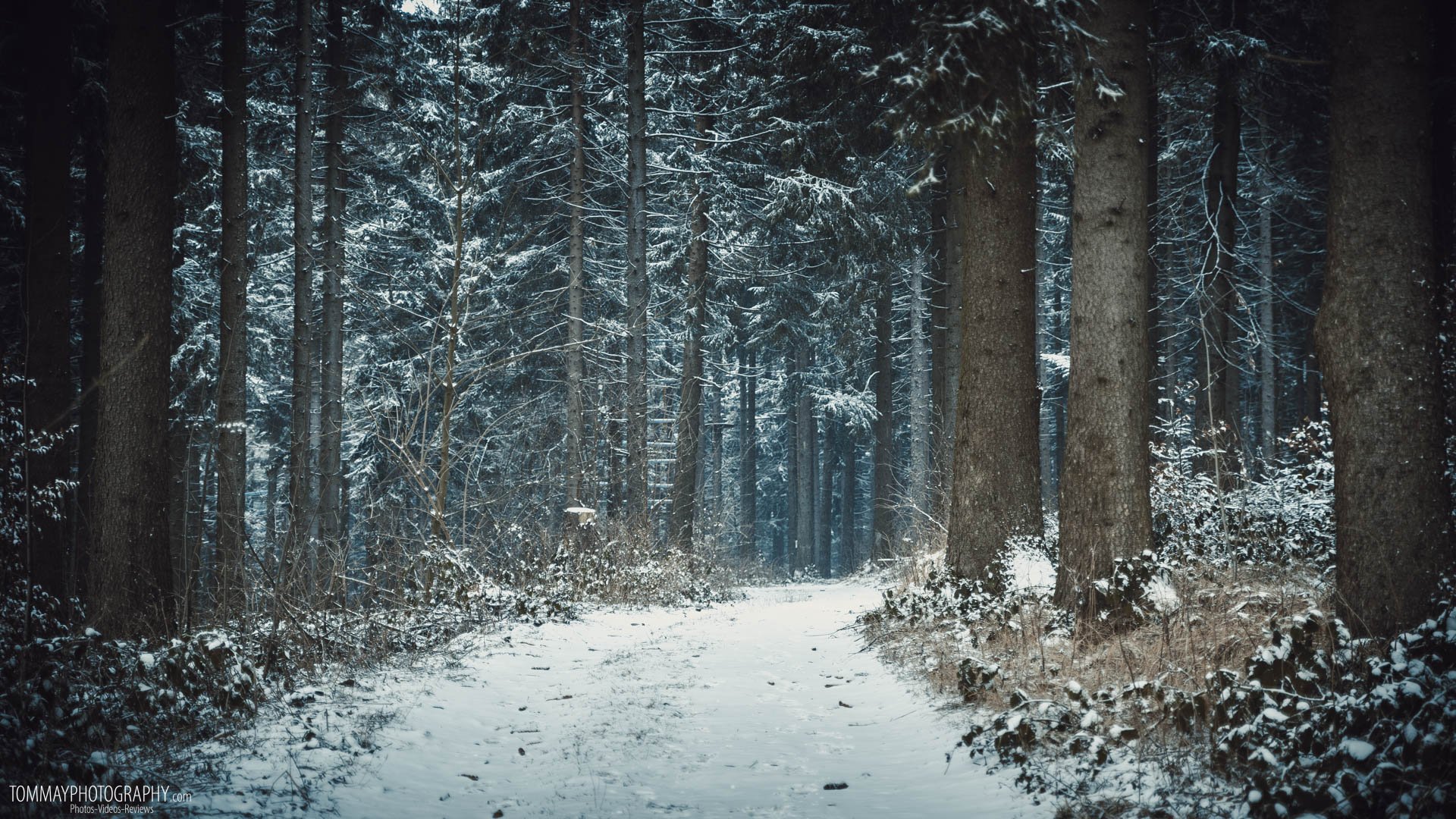 Темный снежный лес