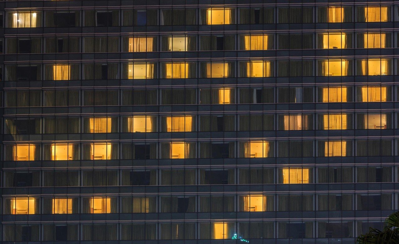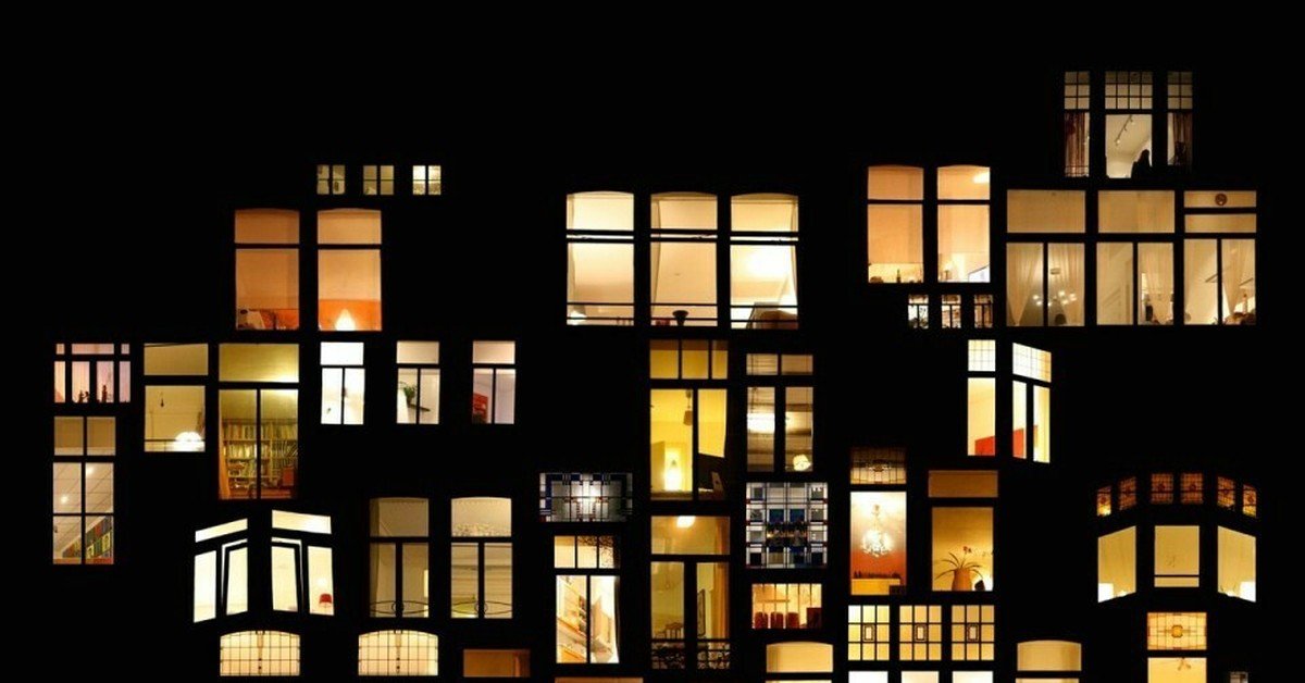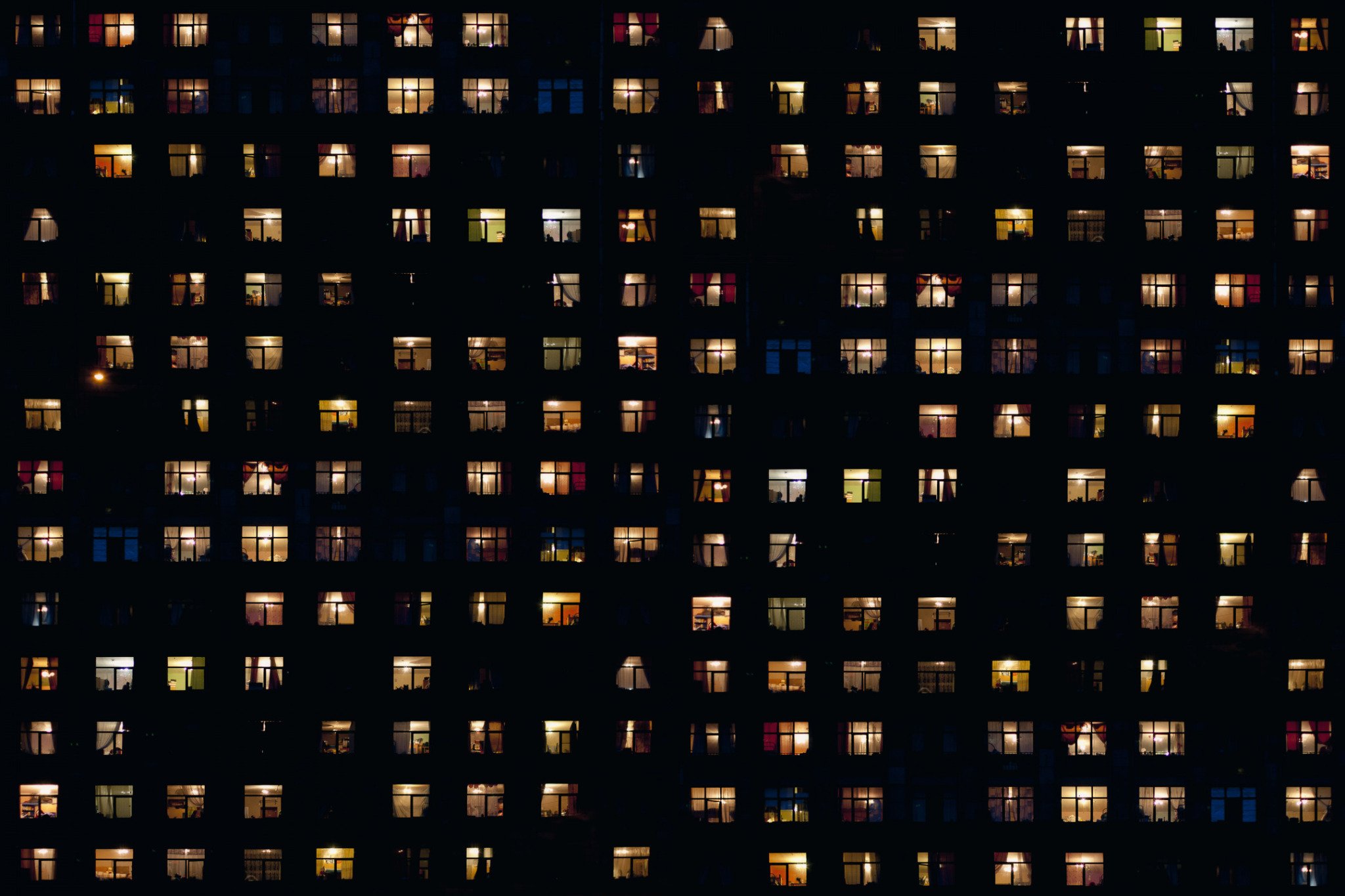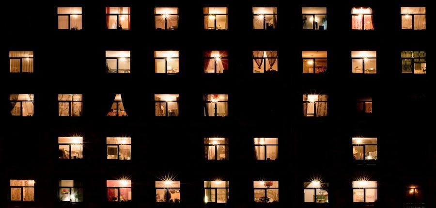 Окна многоэтажки ночью
