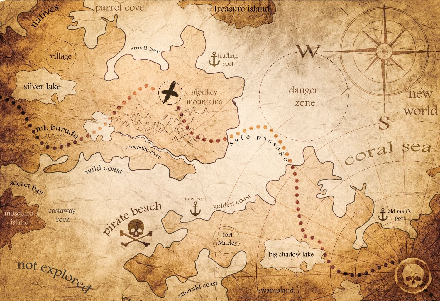 Старая Пиратская карта сокровищ