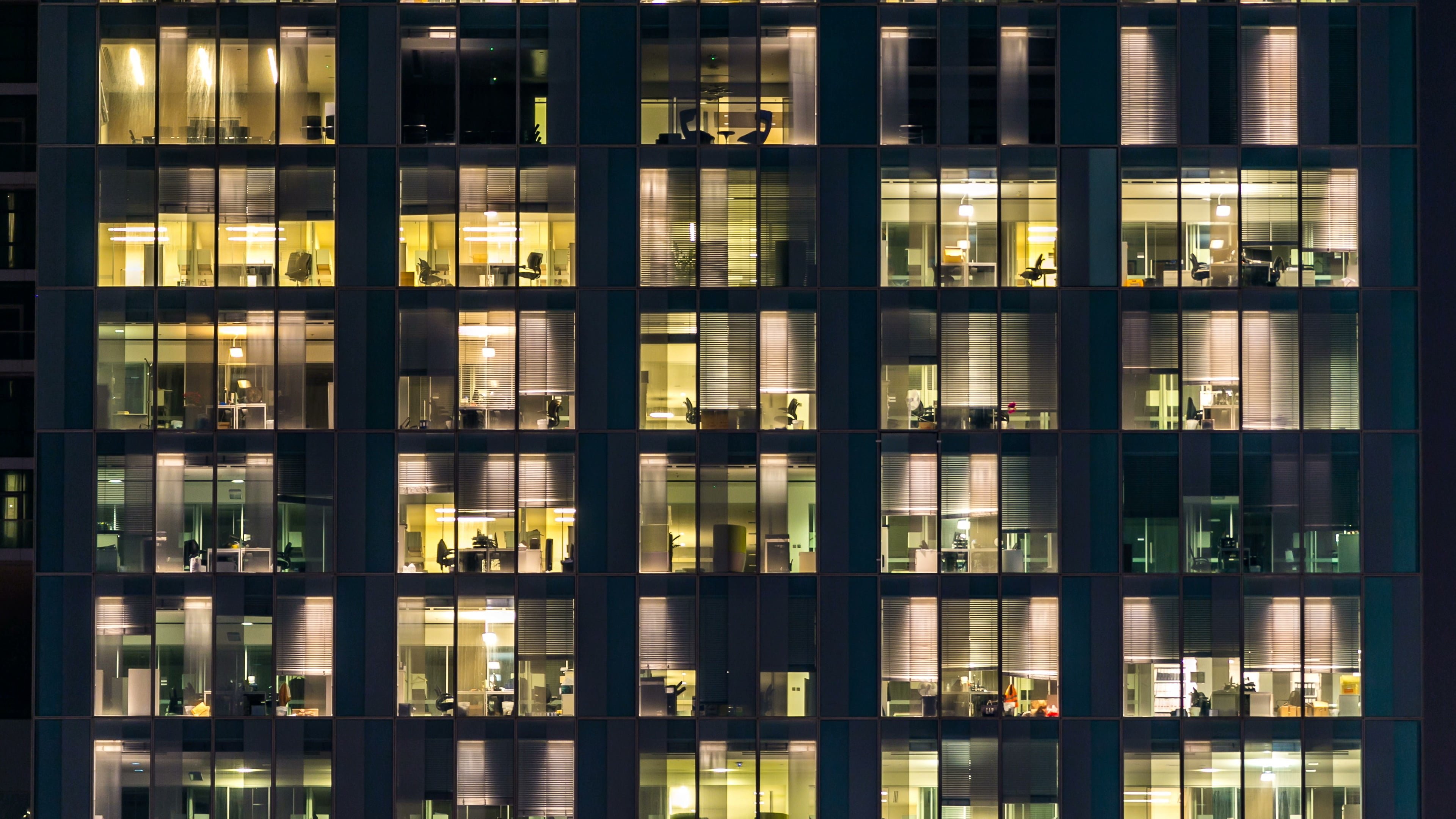 Окна небоскреба ночью