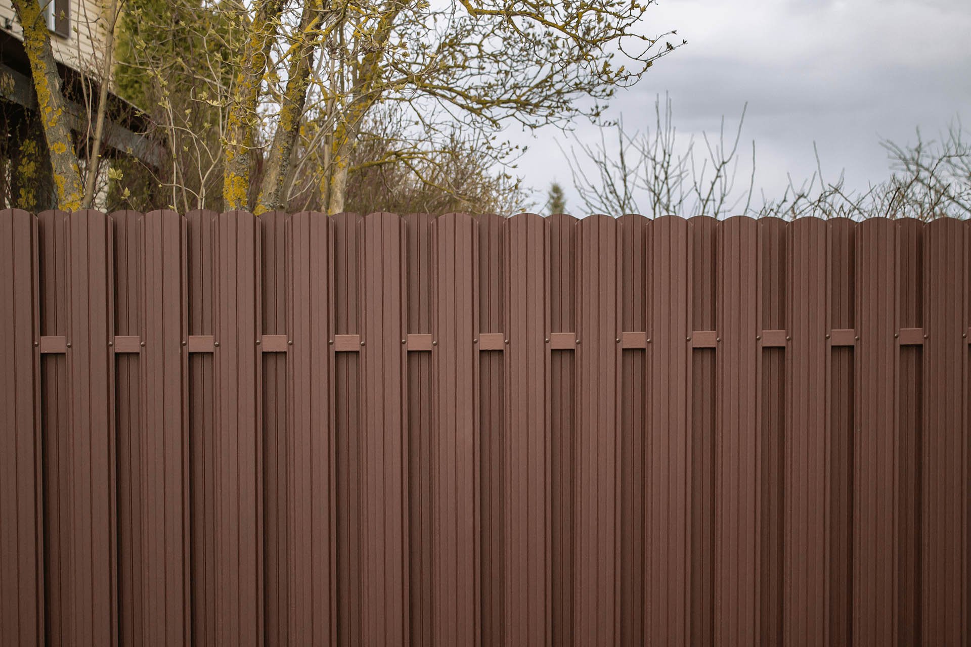 Забор из евроштакетника шахматка под дерево