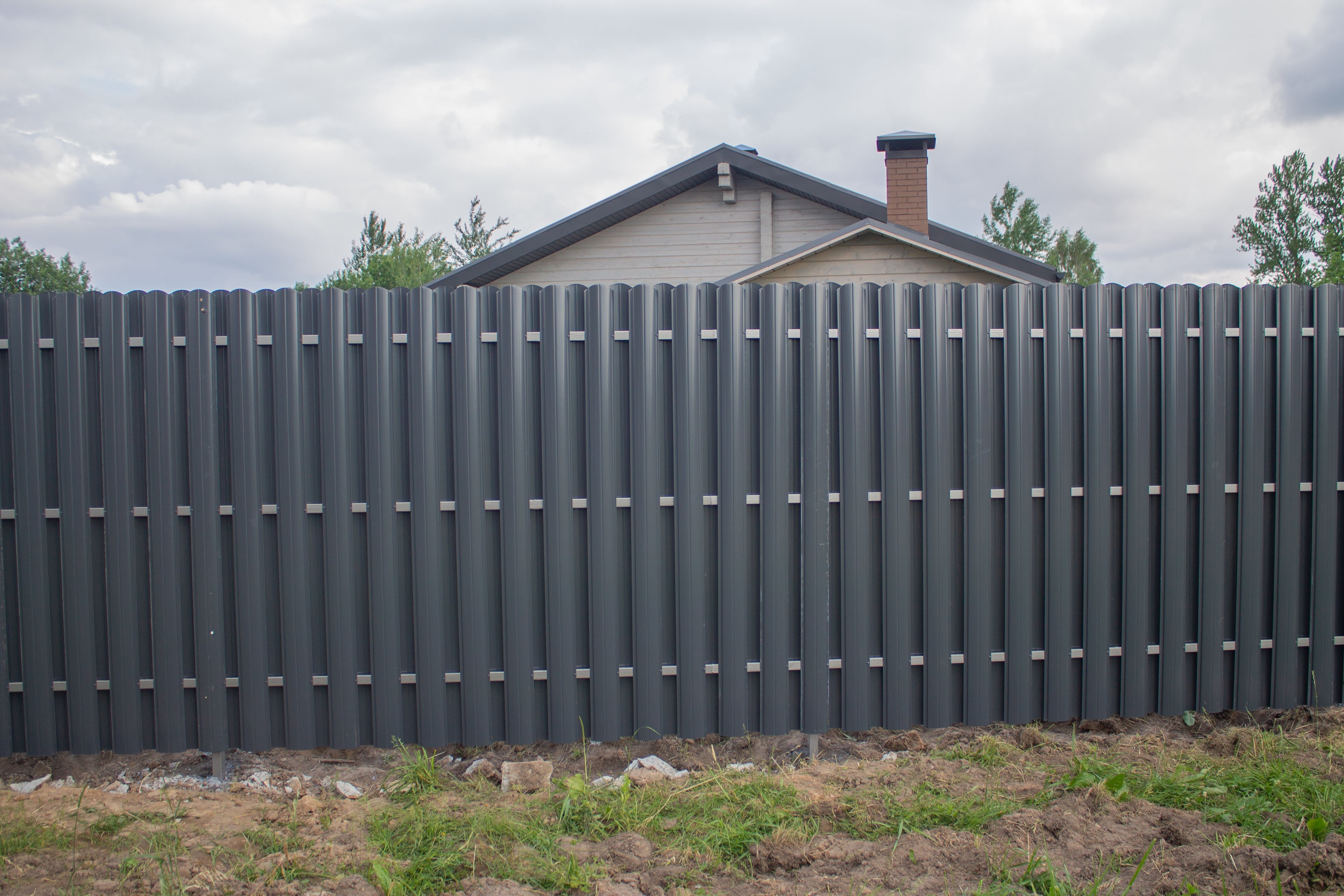 Забор из евроштакетника RAL 8017