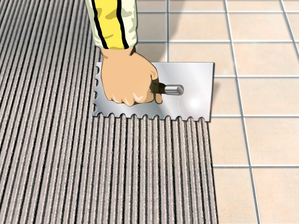Нанесение клея на плитку